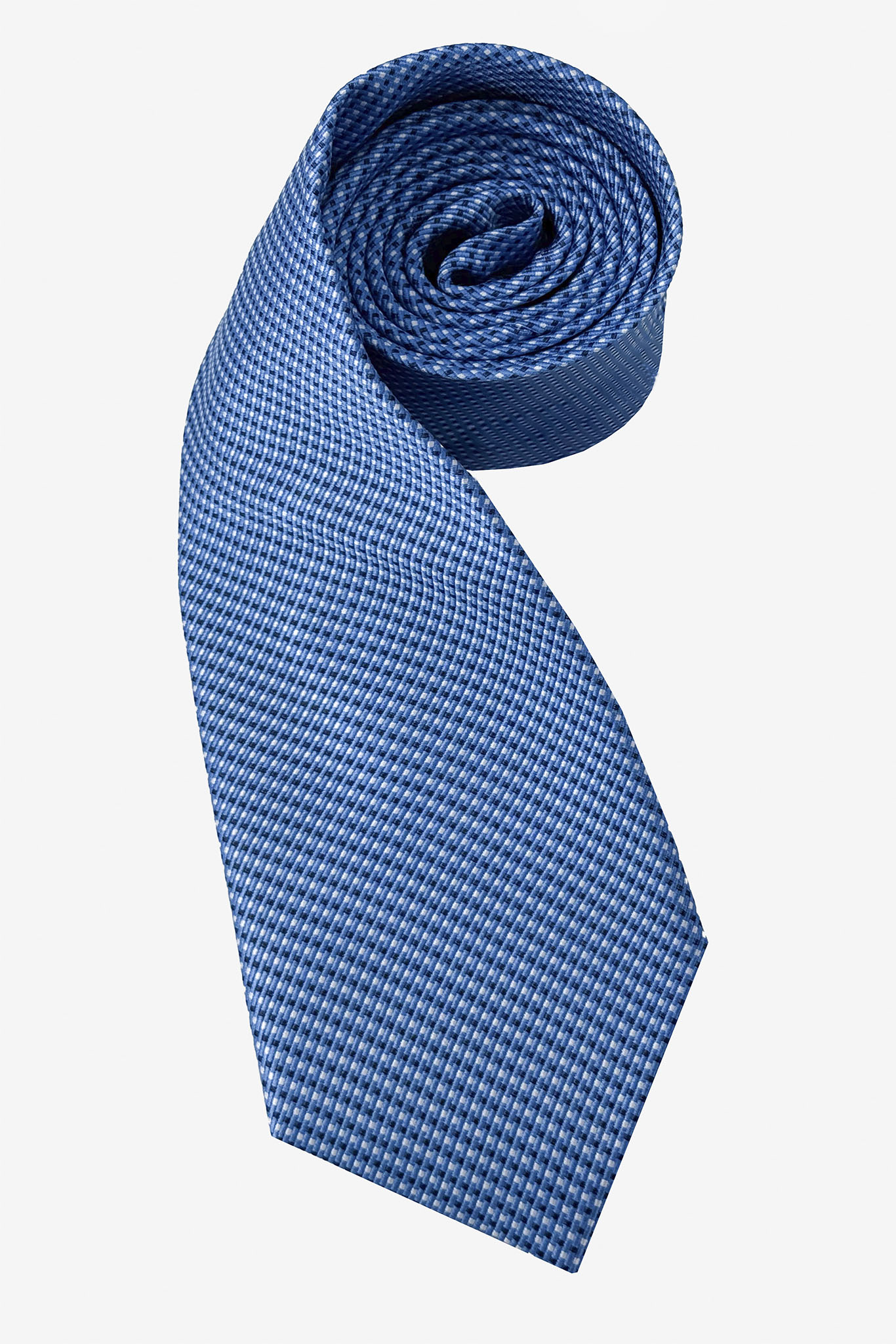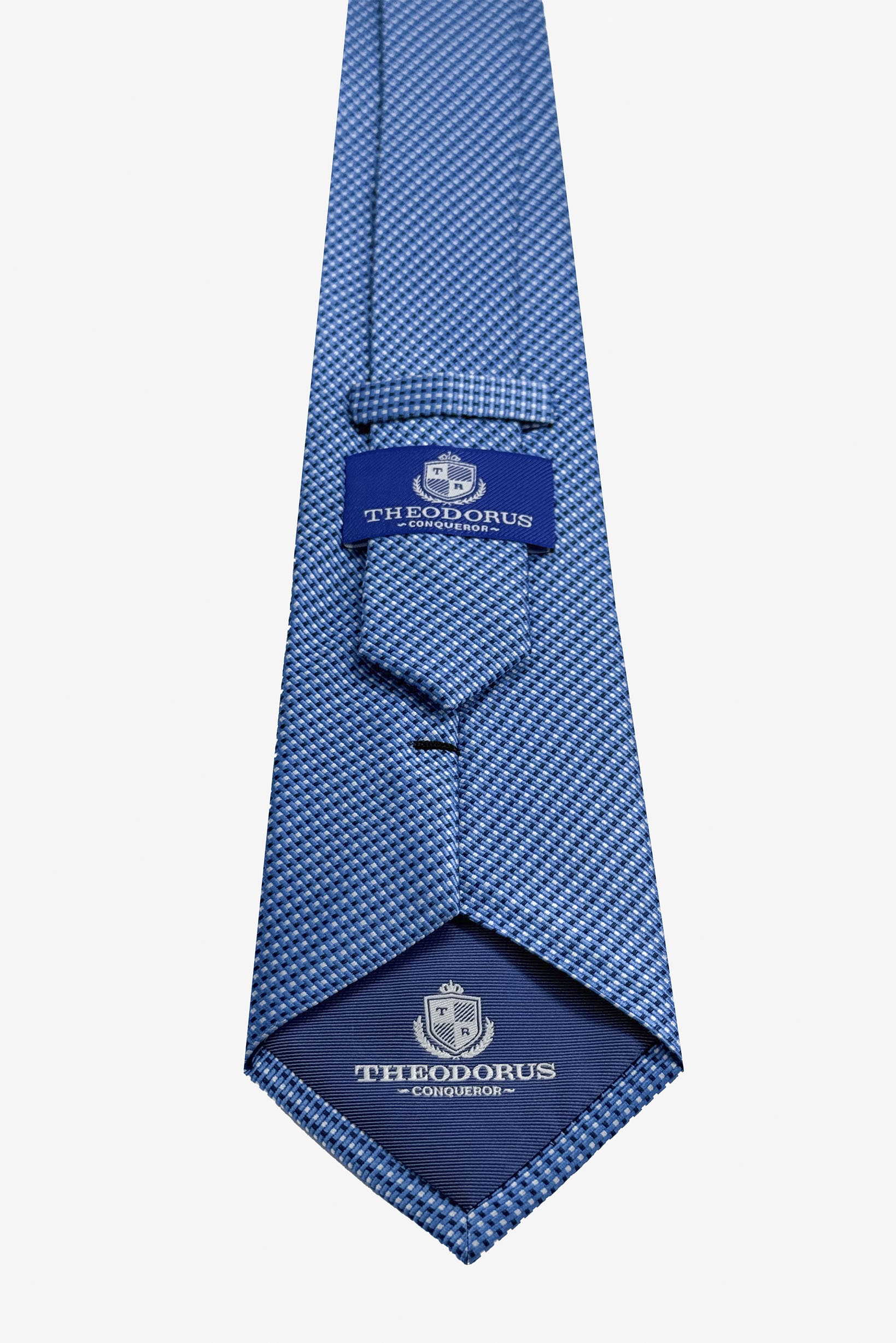 Галстук «Виндзор» в свежем голубом оттенке - выразительный акцент, который освежает образ и добавляет ему аккуратной элегантности. Мелкая геометричная фактура создаёт объёмный рисунок и мягкий блеск, благодаря чему цвет выглядит глубже и благороднее.