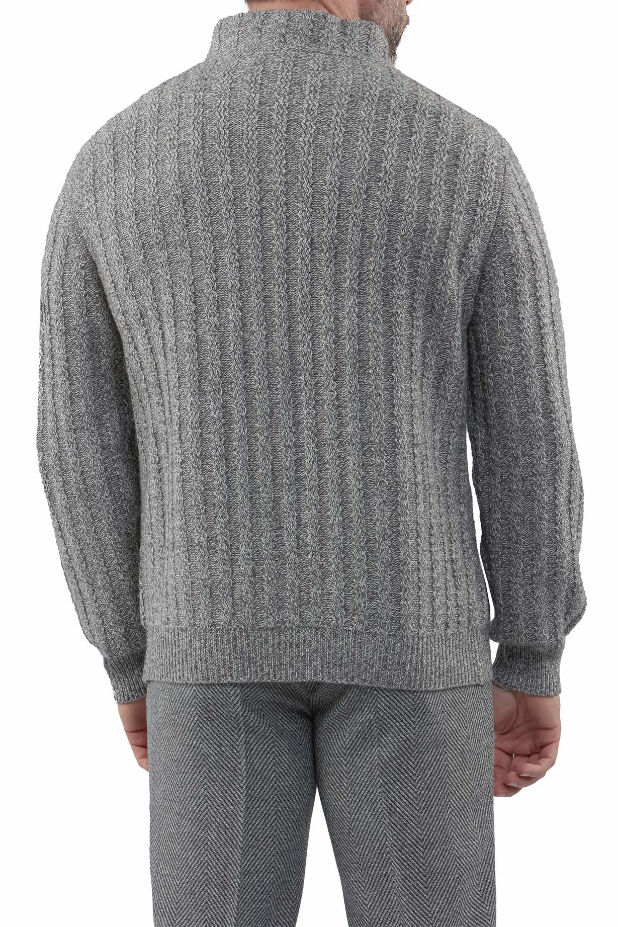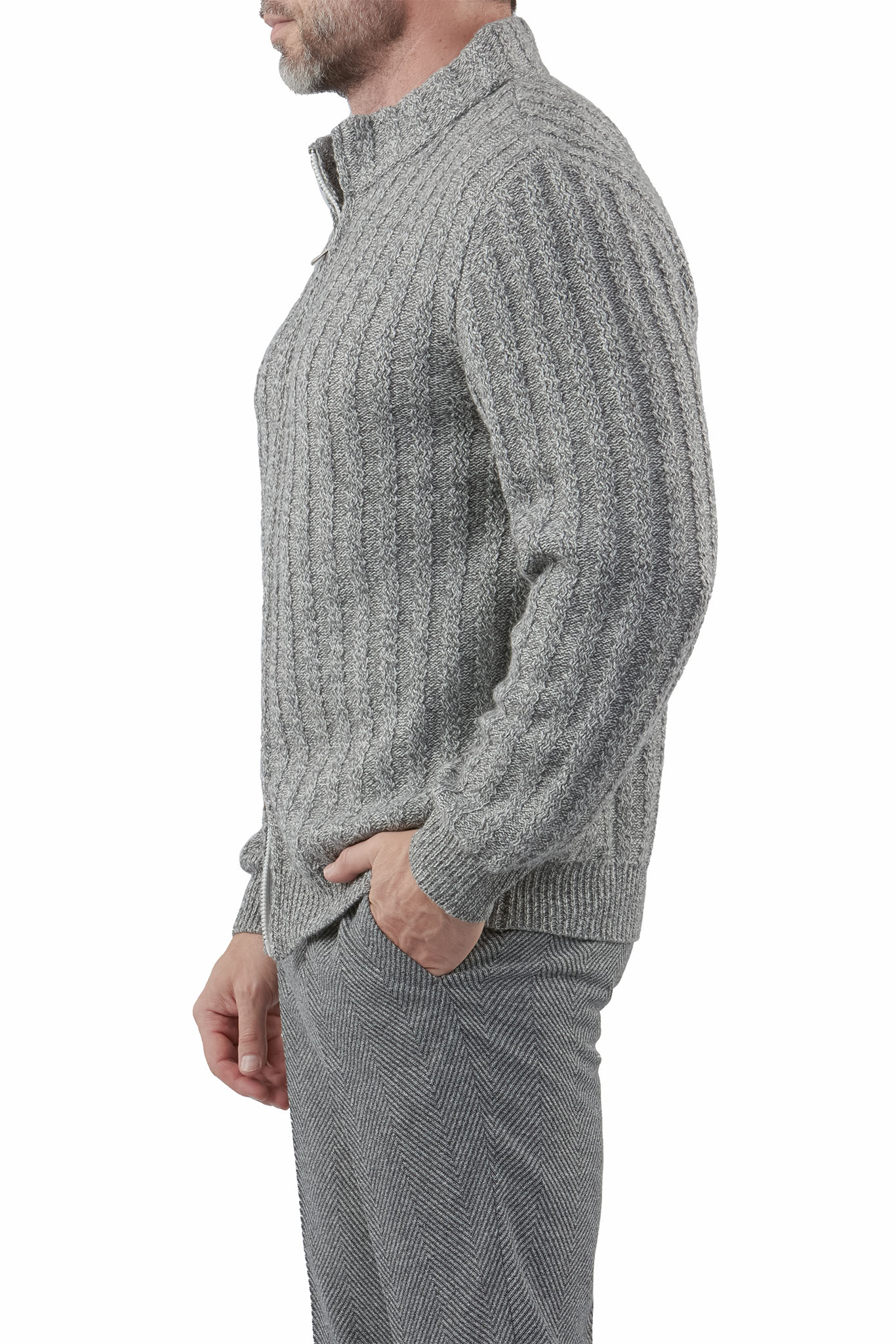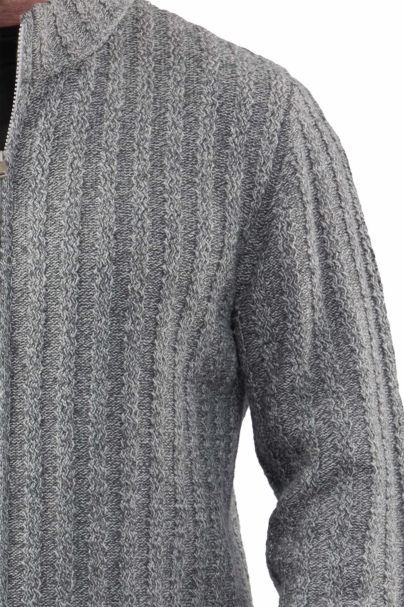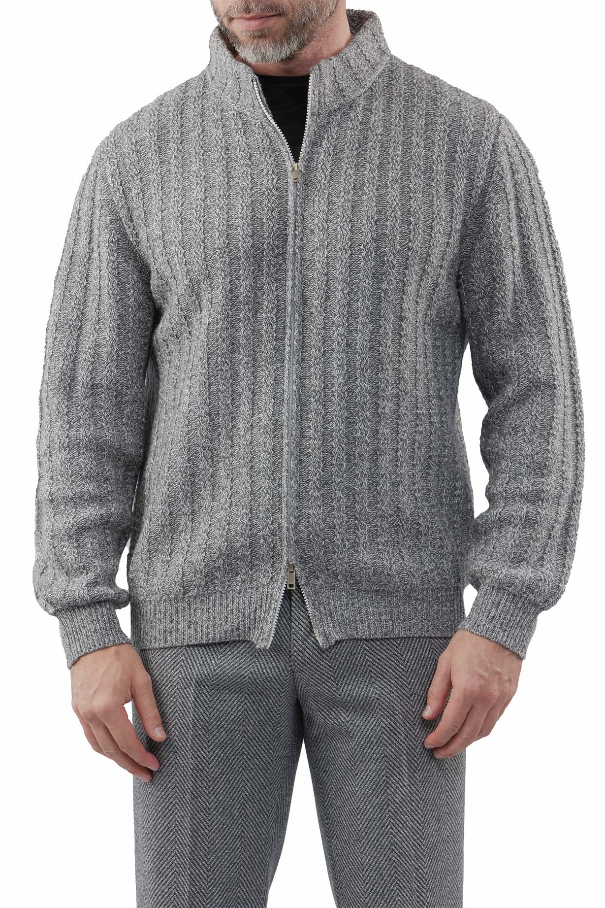 Модель выполнена с фактурной вертикальной вязкой, которая визуально вытягивает фигуру и придаёт изделию выразительность. Высокий воротник-стойка надёжно защищает от прохлады и делает образ более собранным. Застёжка на молнии обеспечивает удобство и функциональность, позволяя носить кардиган как полностью застёгнутым, так и в более расслабленном варианте.