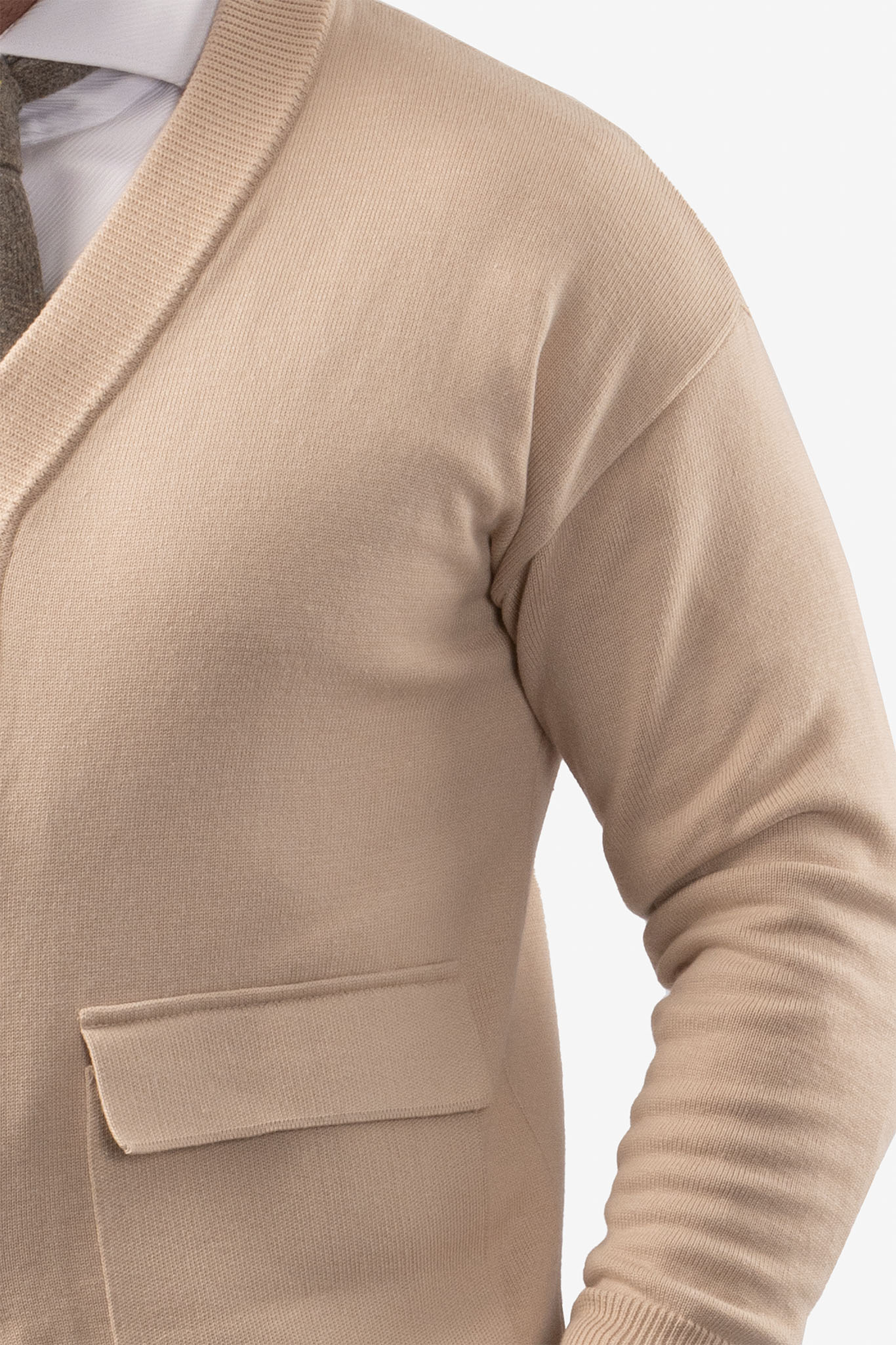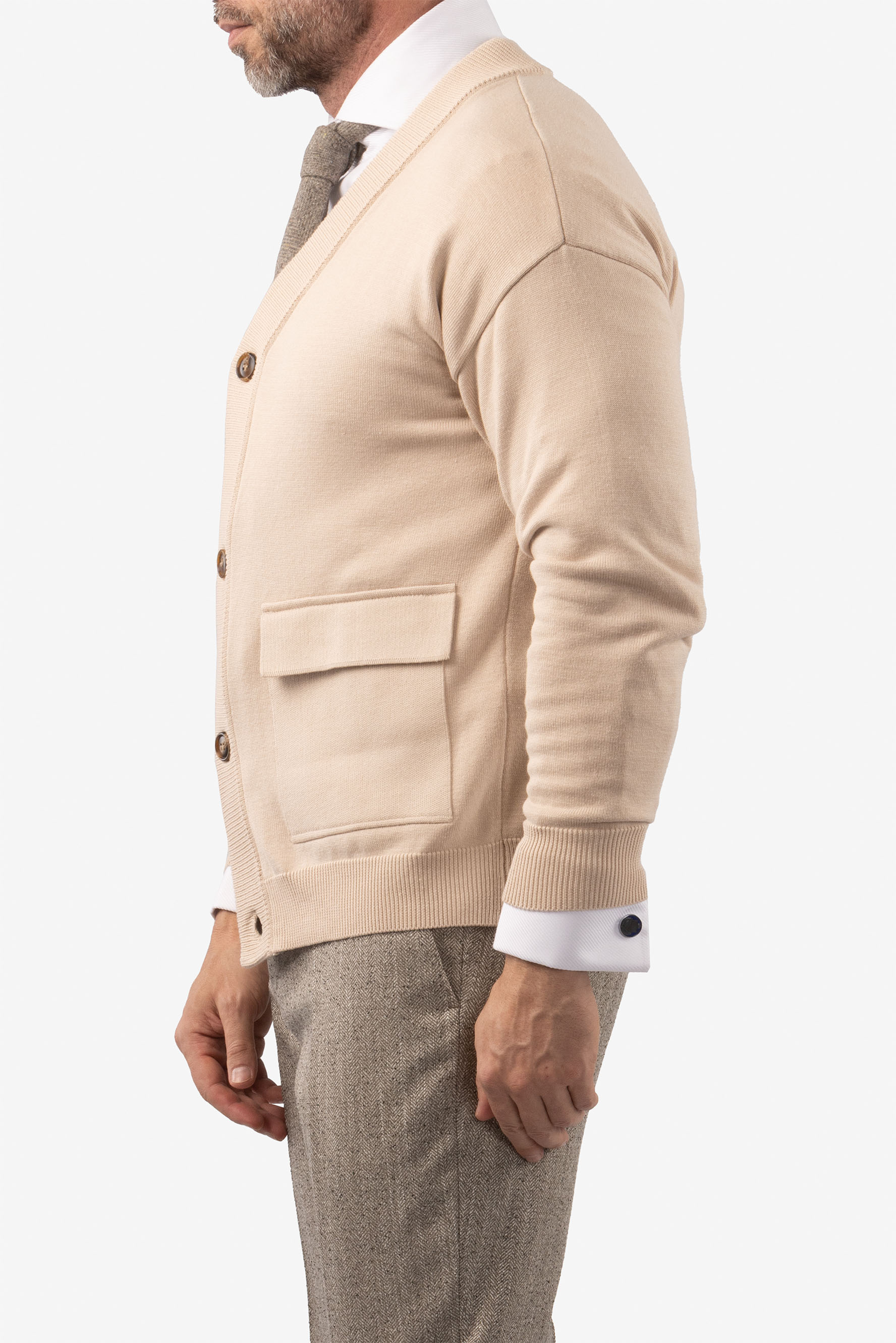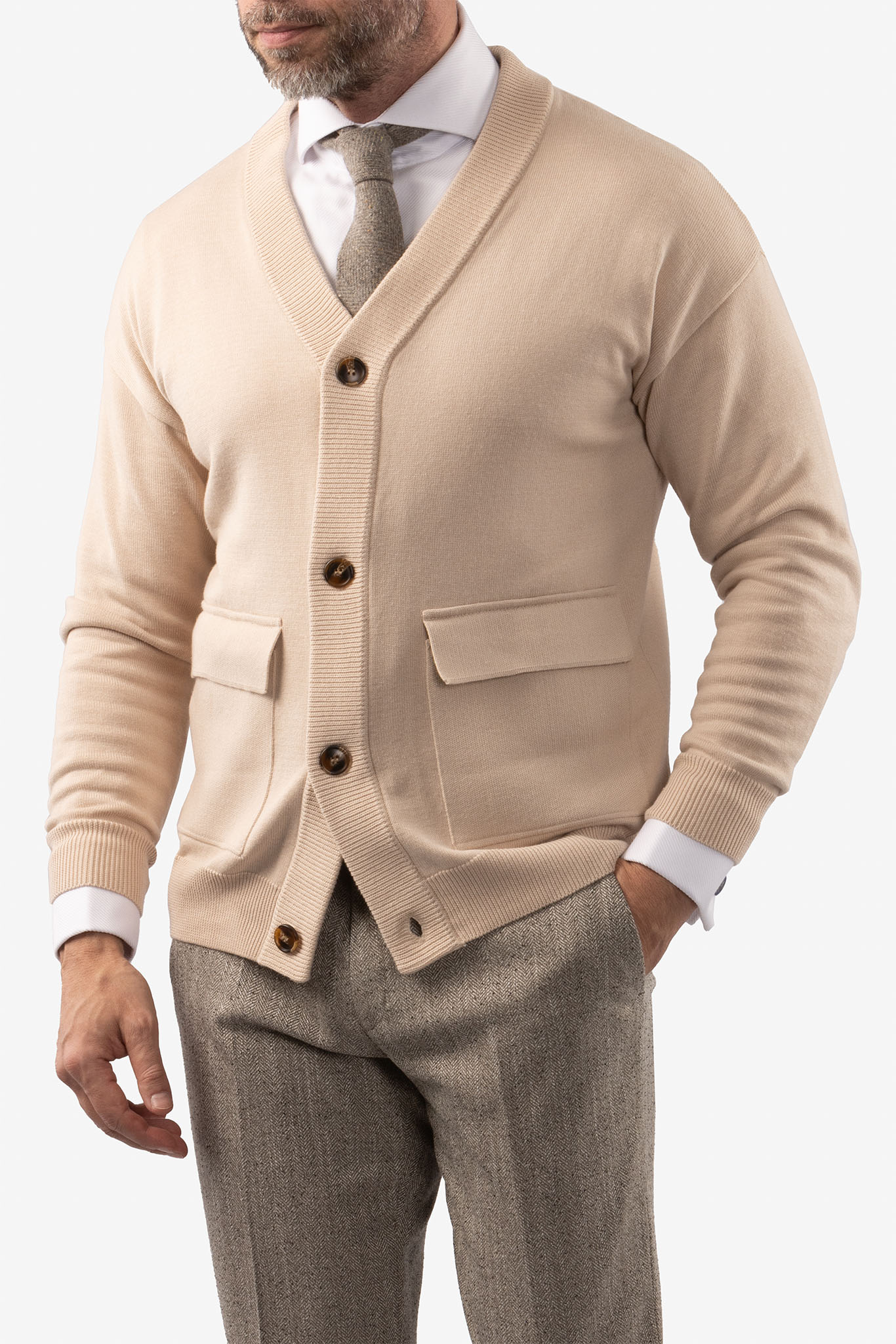 Элегантный кардиган в благородном бежевом оттенке - универсальная база для продуманного мужского гардероба. Лаконичный дизайн и чистые линии делают модель уместной как в деловых образах, так и в повседневных сочетаниях.