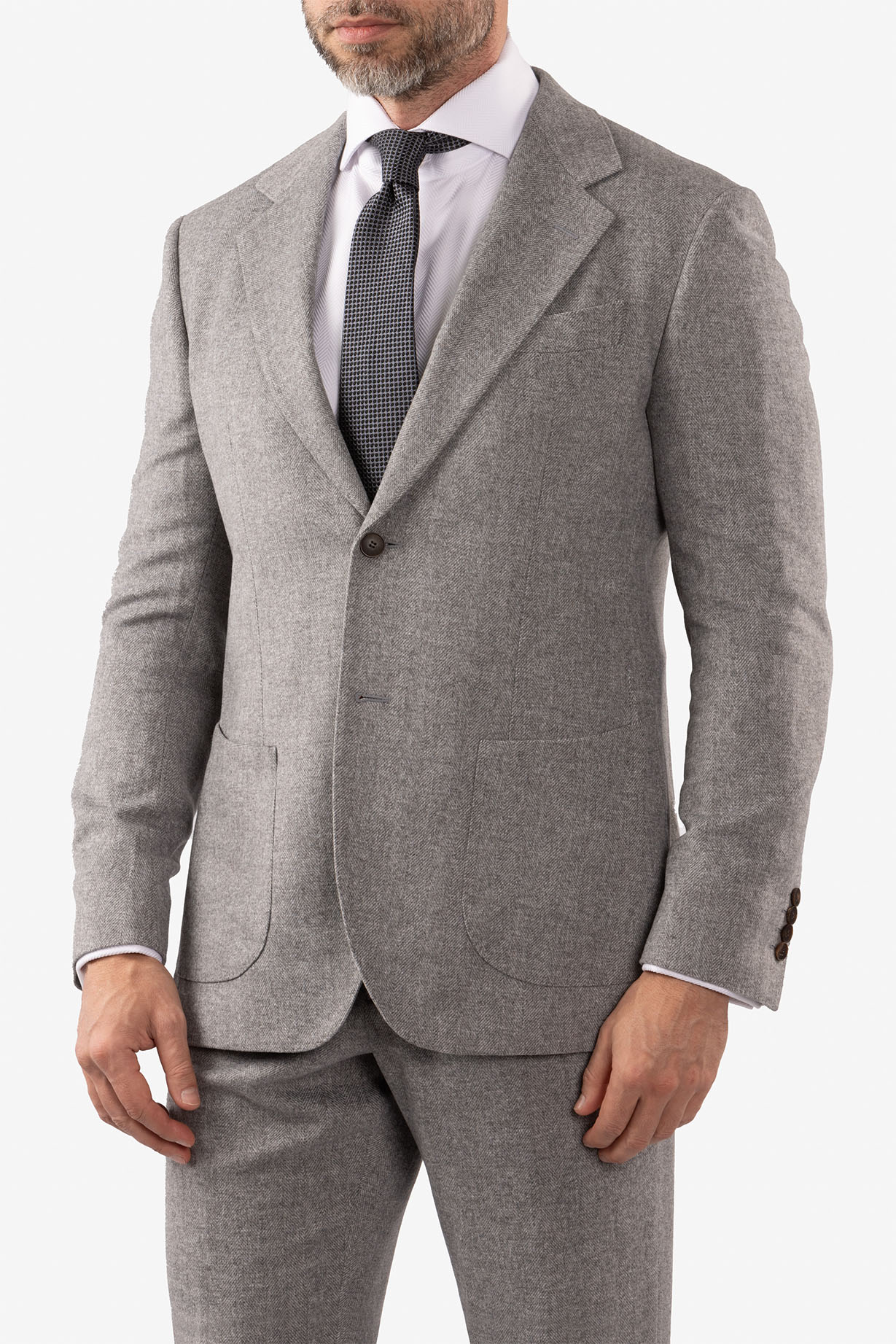 Пиджак однобортный, застёгивается на две пуговицы, с классическим воротником “Notch lapel”. Модель имеет приталенный крой, подчёркивающий силуэт. Предусмотрены накладные карманы, нагрудный карман и две шлицы сзади для удобства движения.