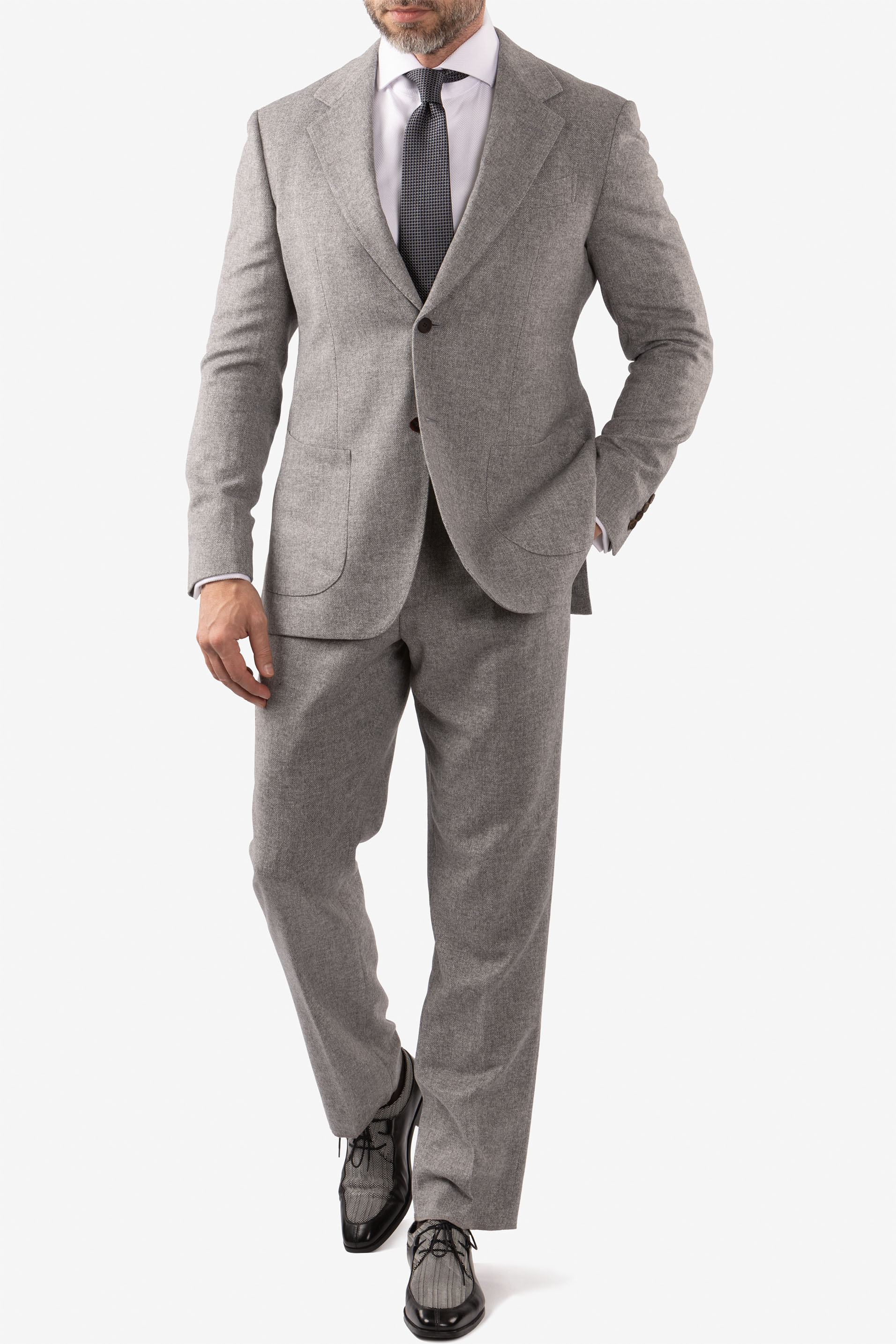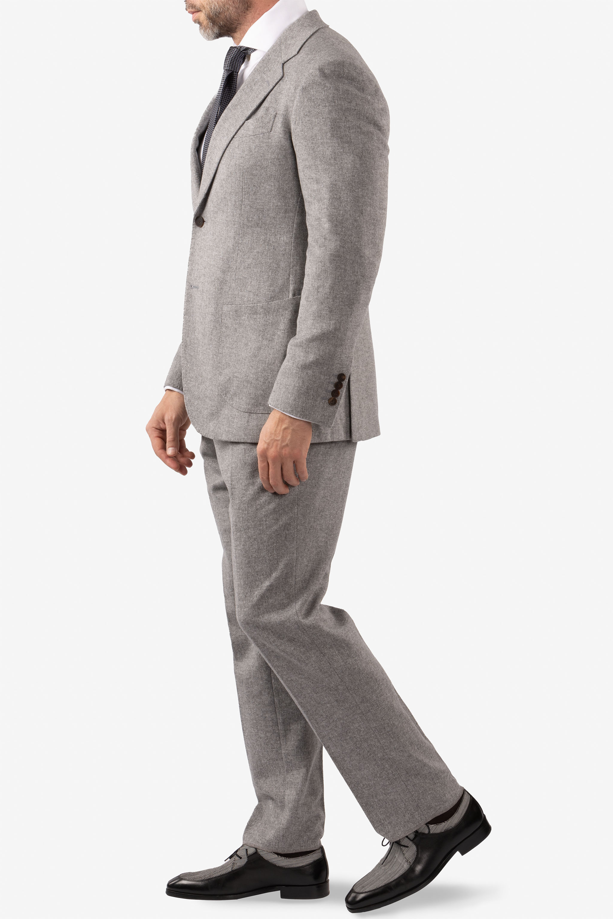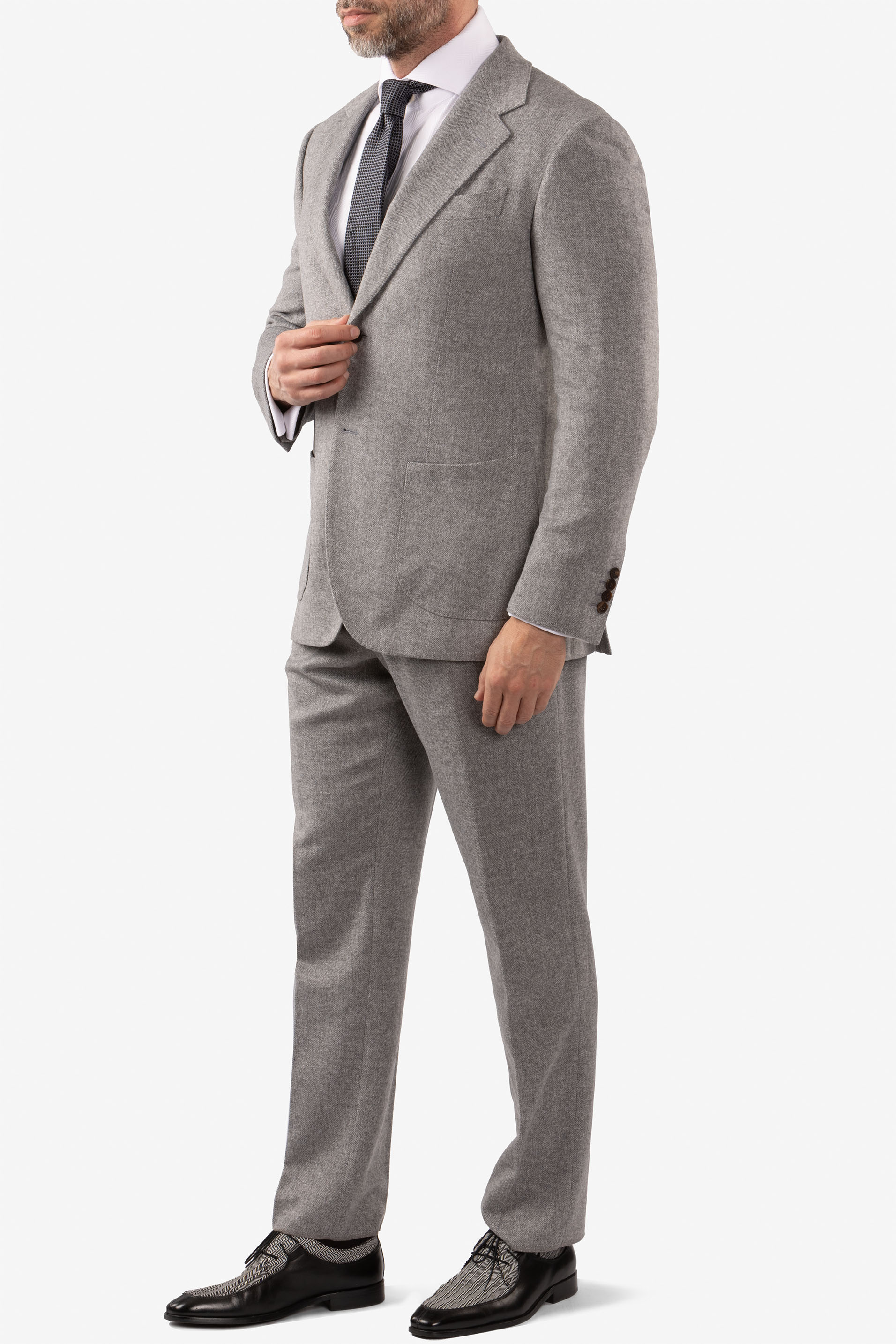 Стильный мужской костюм в универсальном оттенке серый меланж - идеальный выбор для делового гардероба и повседневной элегантности. Лаконичный дизайн позволяет легко сочетать модель с классическими рубашками и аксессуарами.