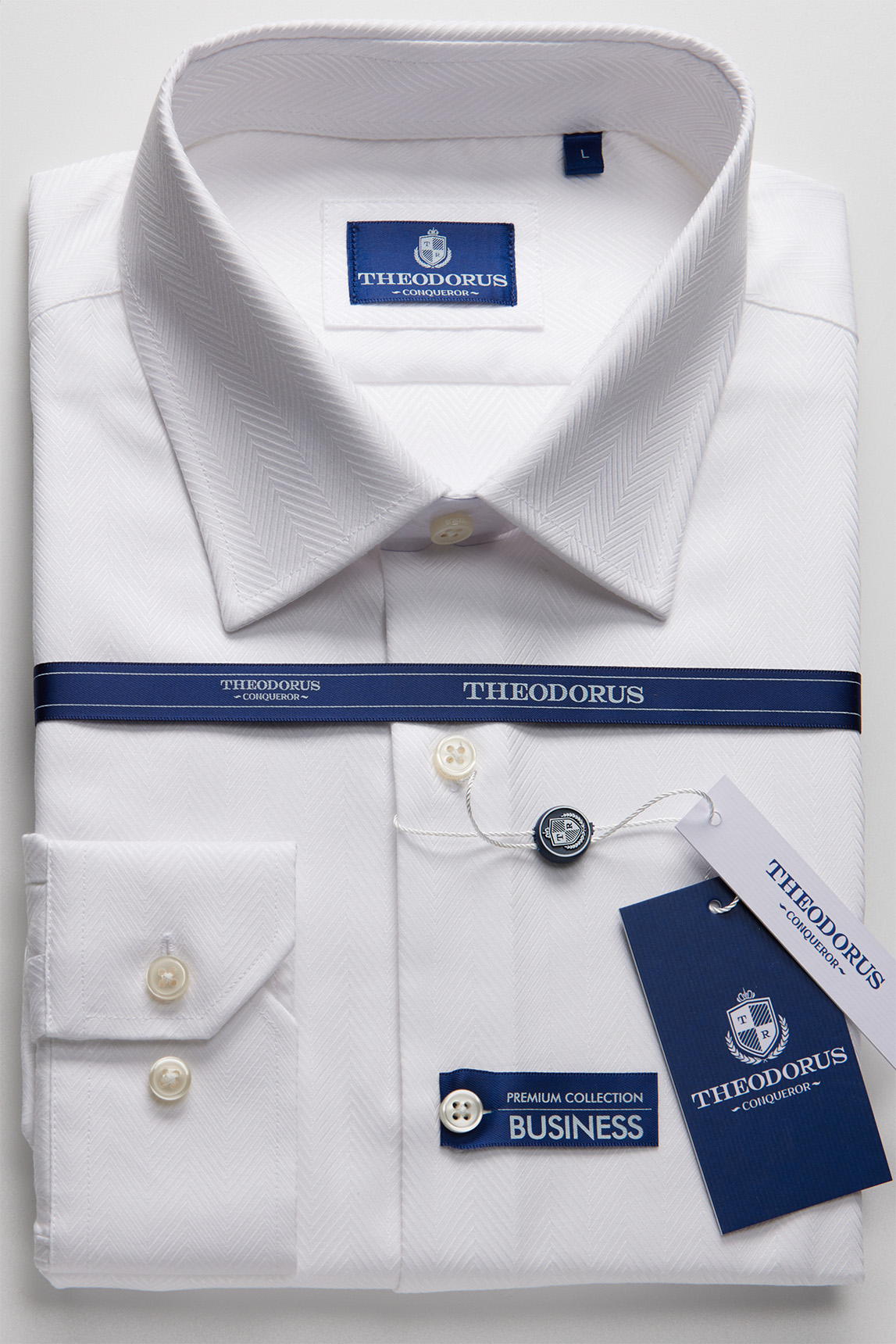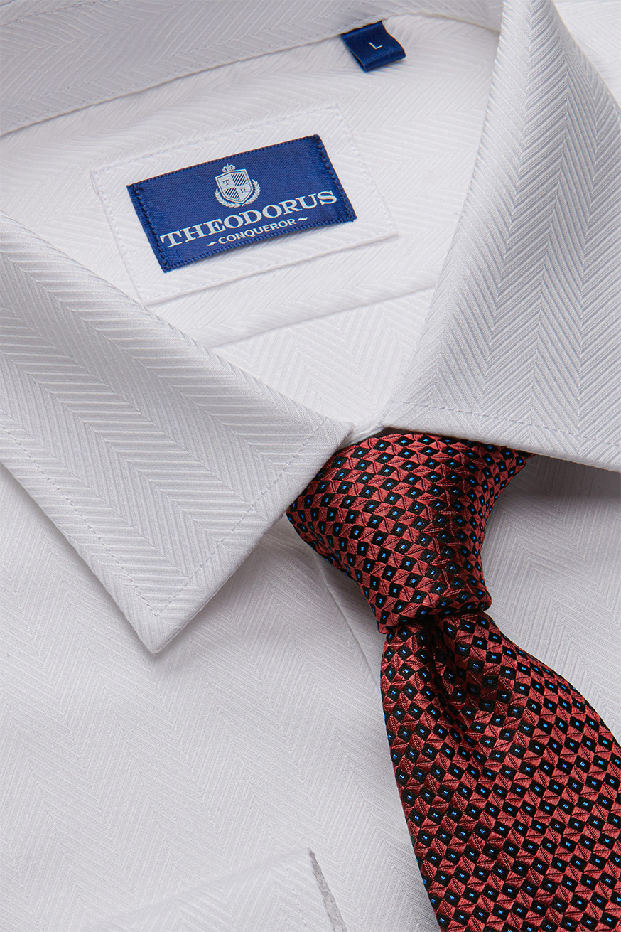 Рубашка белая с плетением «ёлочкой» - строгая классика с премиальным характером
