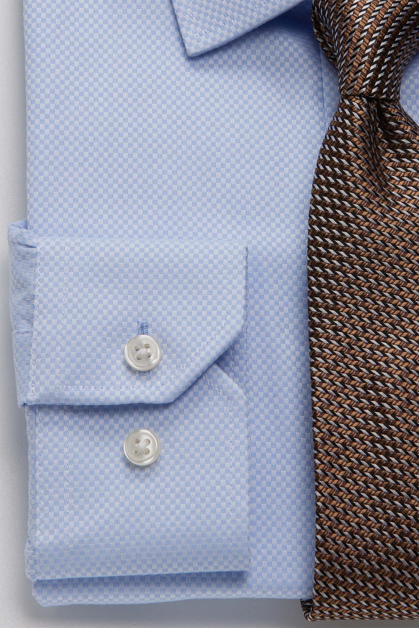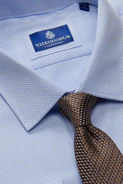 Эта рубашка сочетает в себе сдержанную элегантность и практичность. Голубой оттенок придаёт образу свежесть и лёгкость, делая рубашку отличным выбором как для официальных встреч с костюмом или пиджаком, так и для более повседневных сочетаний с брюками или джинсами.