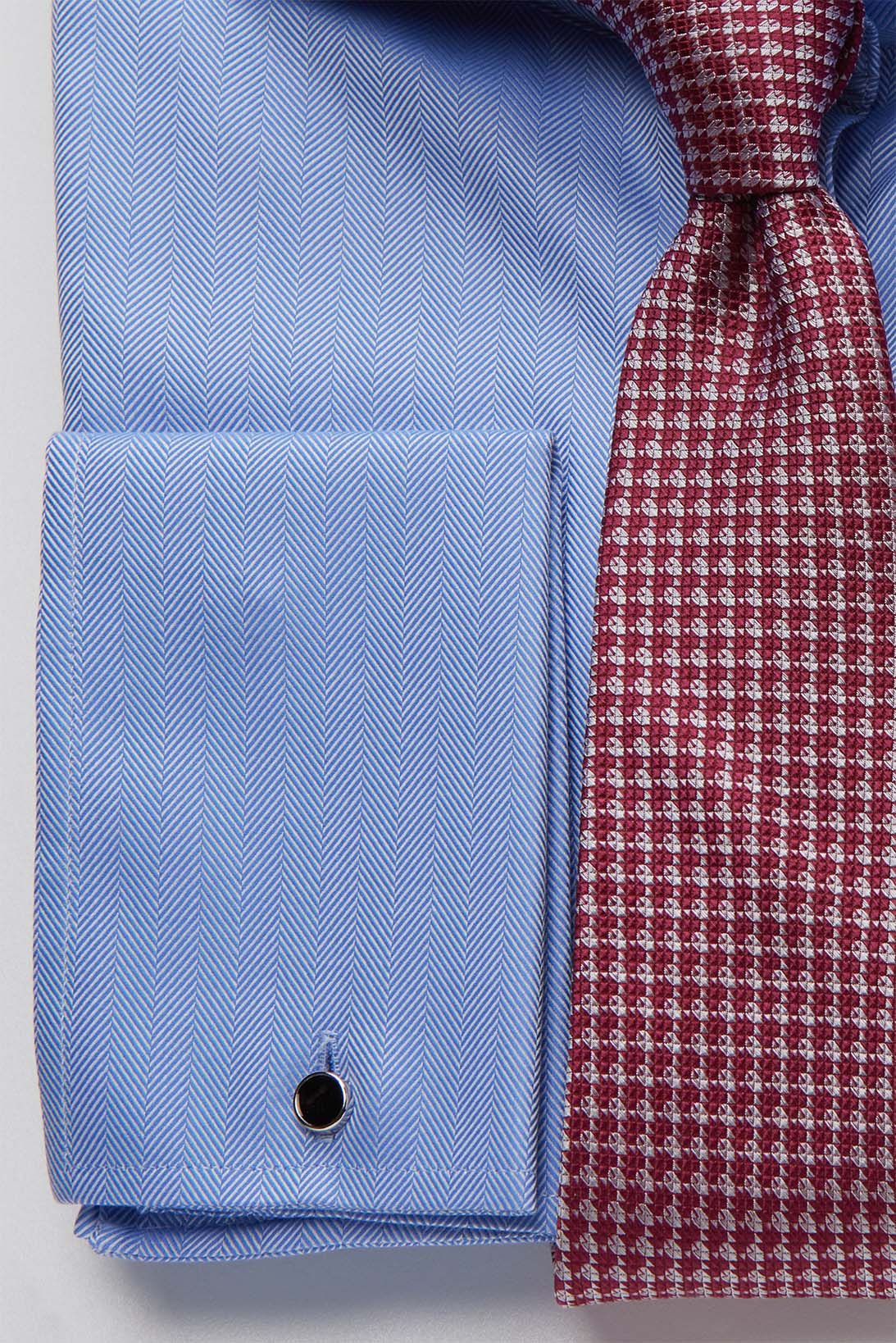 Элегантная рубашка приталенного силуэта - аккуратно подчеркивает фигуру за счет вытачек и чистой посадки. Итальянский воротник на высокой стойке с двумя пуговицами красиво держит форму и подходит под галстук любого узла. Манжеты под запонки «French cuffs» добавляют образу статус и завершенность.