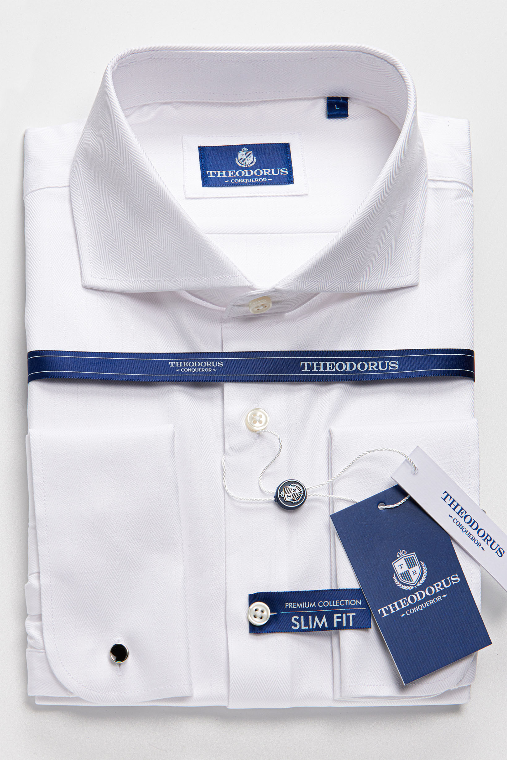 Белая рубашка с изящным плетением «ёлочка» - фактура смотрится утонченно и придает ткани глубину. Материал гладкий, шелковистый и комфортный к телу.