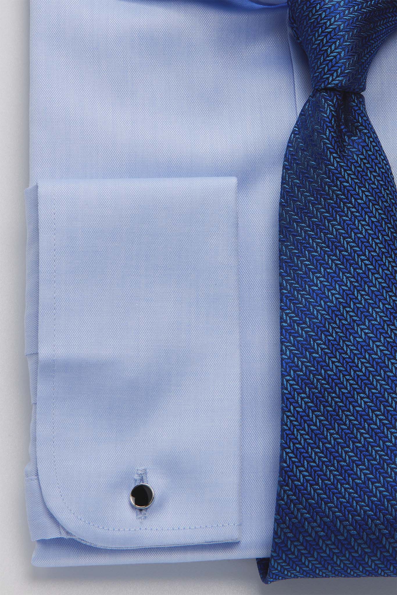 Полуприталенный силуэт с вытачками на спинке обеспечивает хорошую посадку по фигуре. Итальянский воротник на стойке с одной пуговицей смотрится аккуратно и держит форму. Манжеты под запонки «French cuffs» подчеркивают статусность и идеально подходят для классических и торжественных образов.