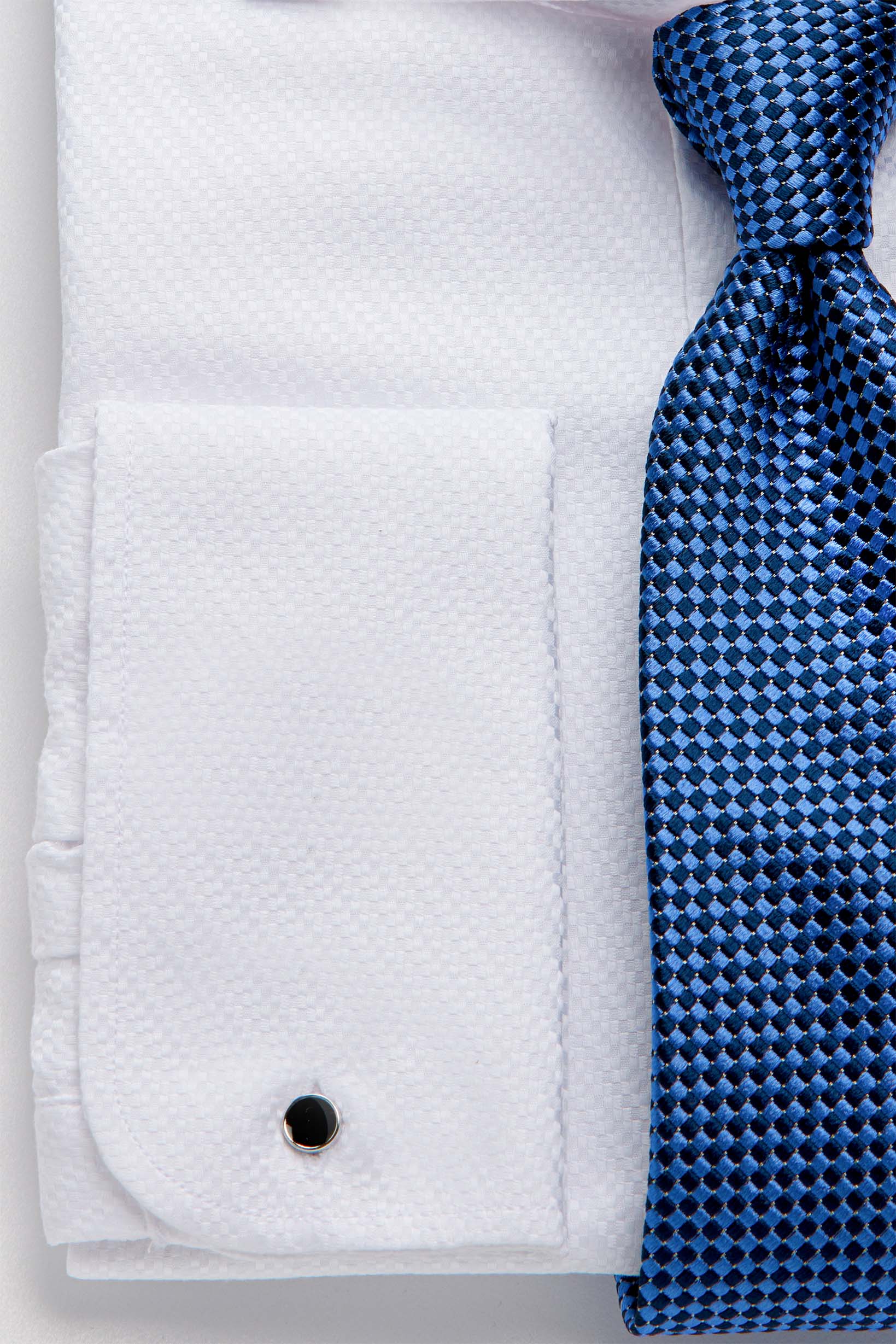 Полуприталенный силуэт с вытачками на спинке аккуратно подчеркивает фигуру. Итальянский воротник на стойке с одной пуговицей держит форму и подходит как под галстук, так и под бабочку. Манжеты под запонки «French cuffs» - элегантный акцент для классических и вечерних комплектов.