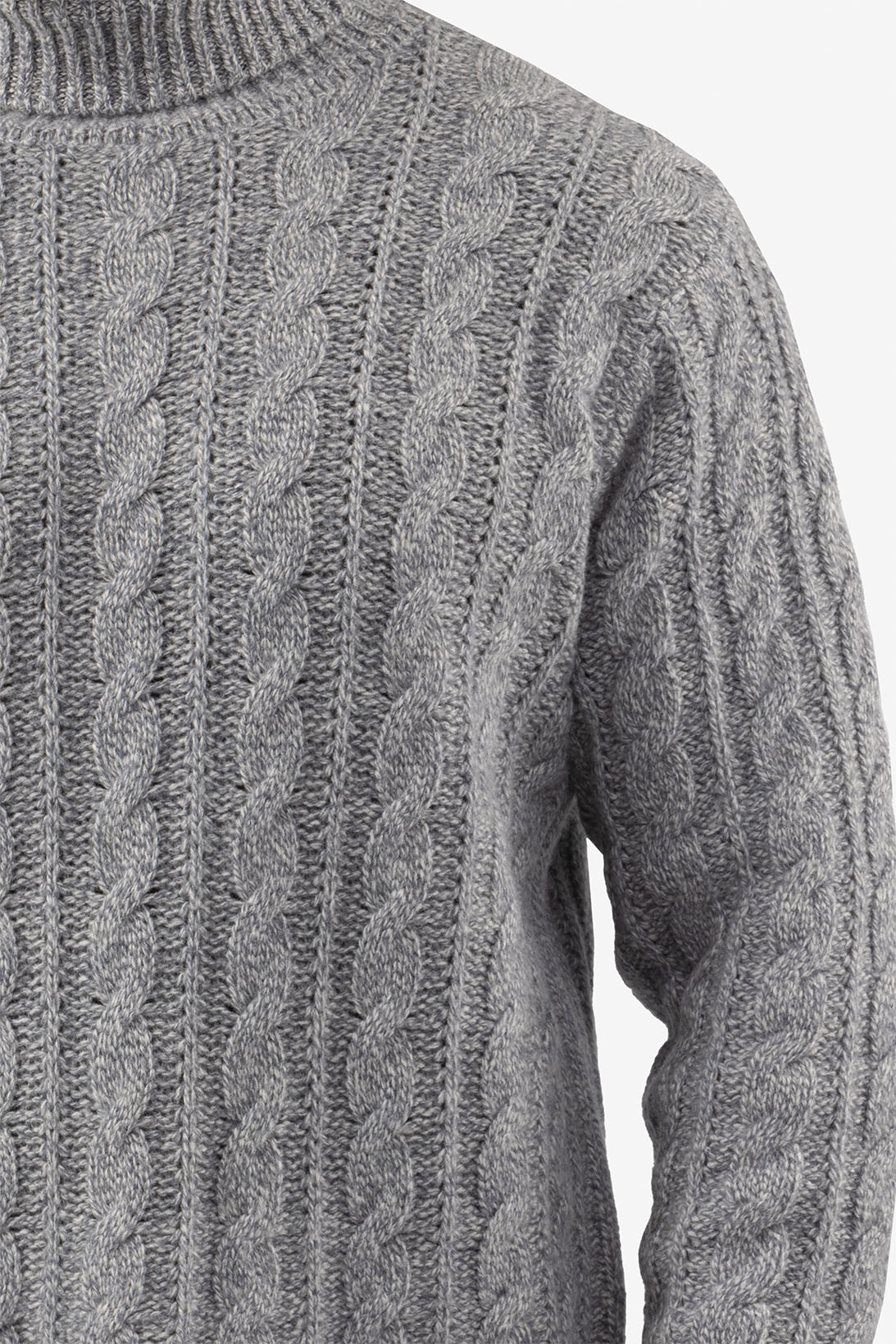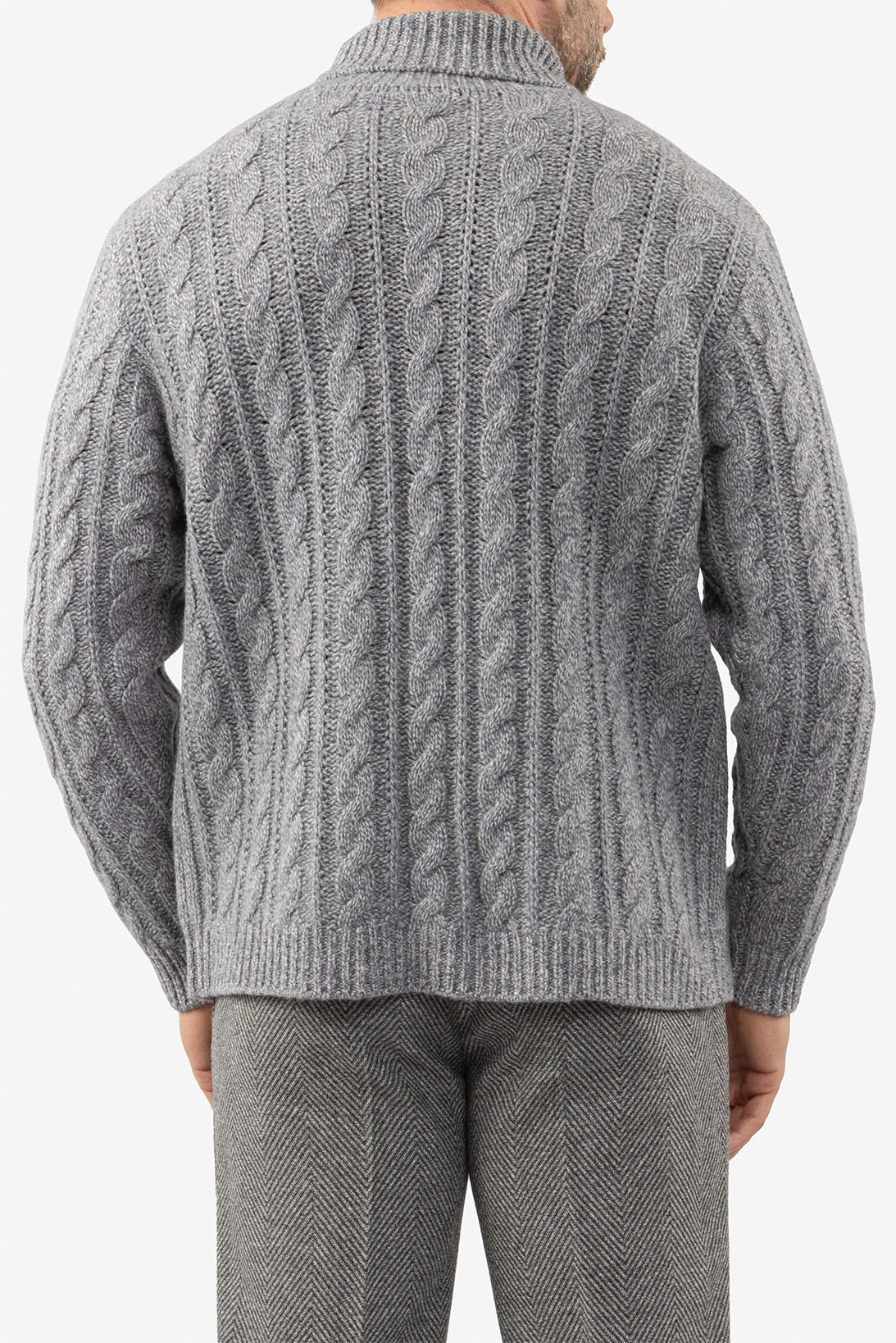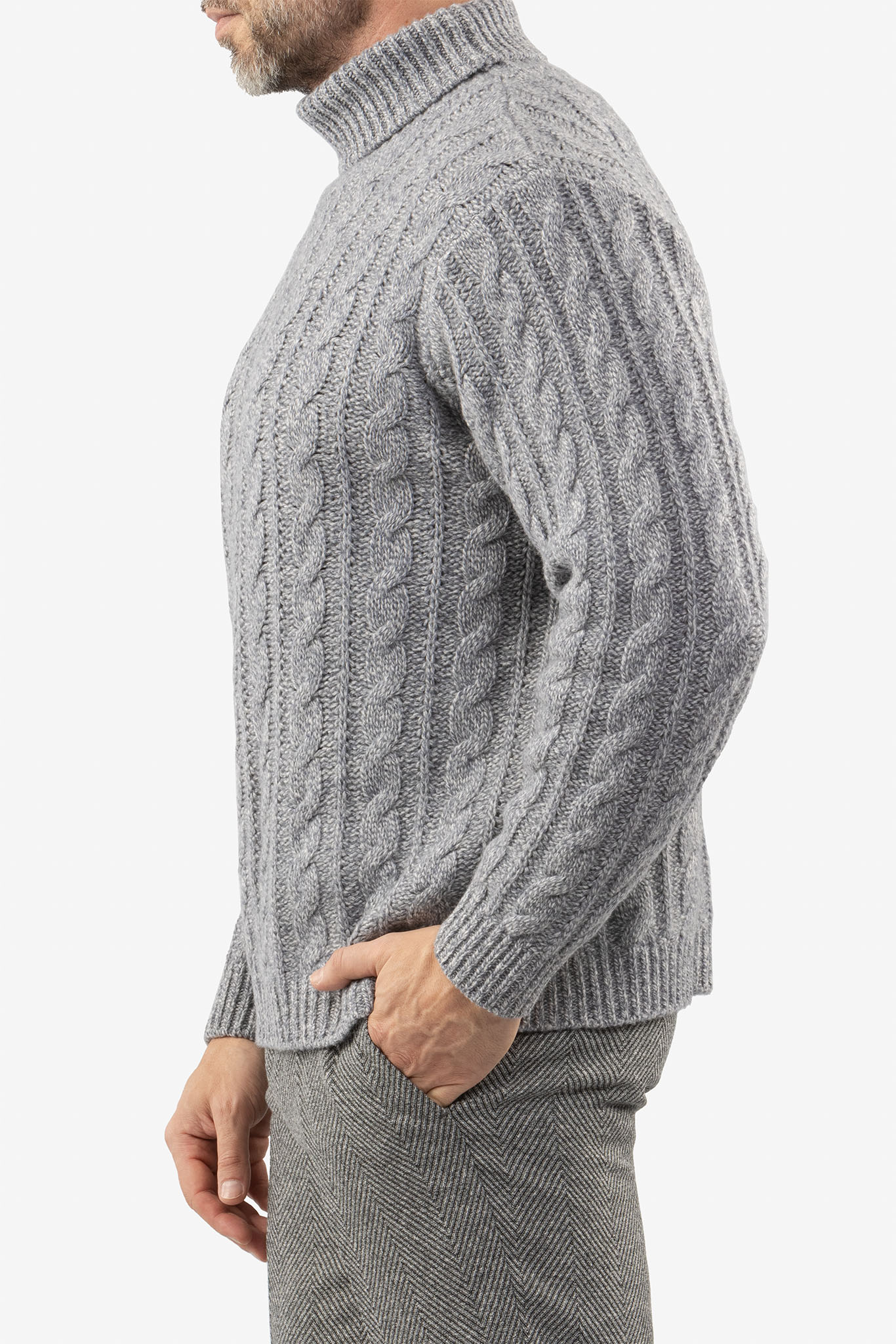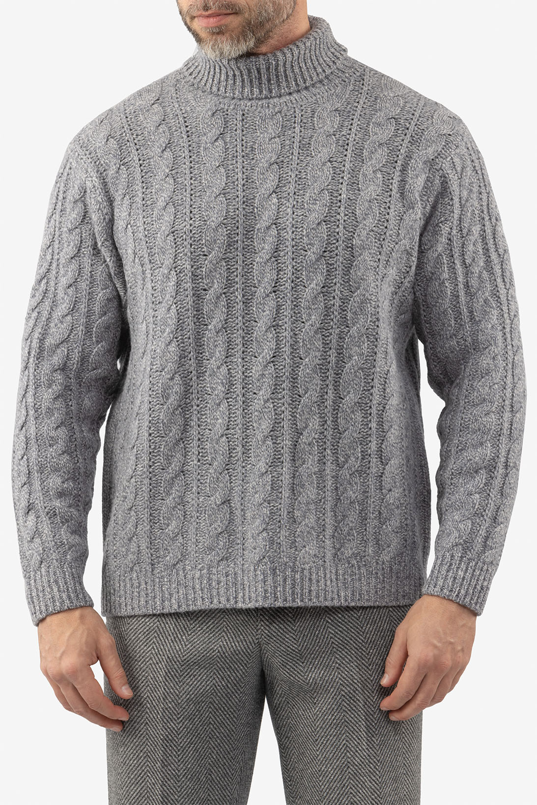 Стильный мужской свитер в благородном сером оттенке - универсальная модель для прохладного сезона. Фактурная вязка с вертикальными косами придаёт изделию выразительный объём и подчёркивает классический характер модели.